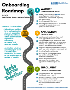 If you do not meet the eligibility and requirements to participate in NAMI San Diego & Imperial Counties’ Medi-Cal Peer Support Specialist Training, we invite you to explore CalMHSA approved training options through their Approved Training Provider website: https://www.capeercertification.org/training-for-medi-cal-peer-support-specialist/